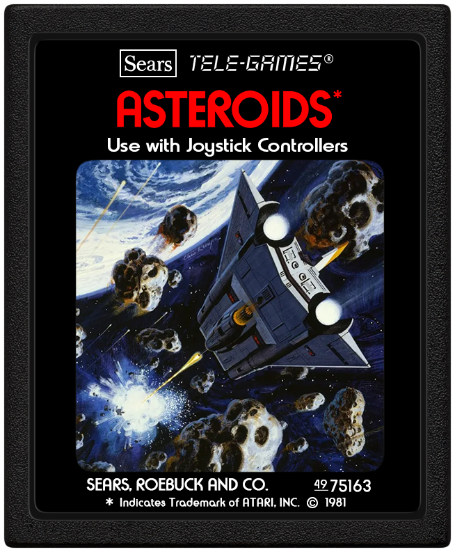 Используя контроллер, игрок может вращать корабль (влево или вправо) в любом направлении или двигаться вперед. Выстрелы производятся в выбранном направлении движения корабля. У игрока есть три запасных корабля, которые могут заменить уничтоженный корабль. Корабль уничтожается, если в него врезается астероид или по нему стреляет инопланетная тарелка. Кроме того, игрок может воспользоваться гиперпространственным прыжком, чтобы избежать столкновения, однако прыжок может привести и к уничтожению корабля.