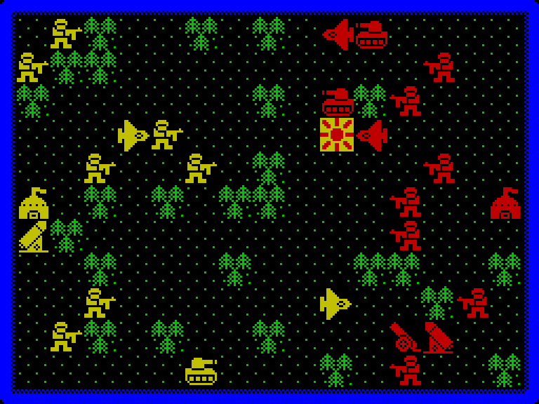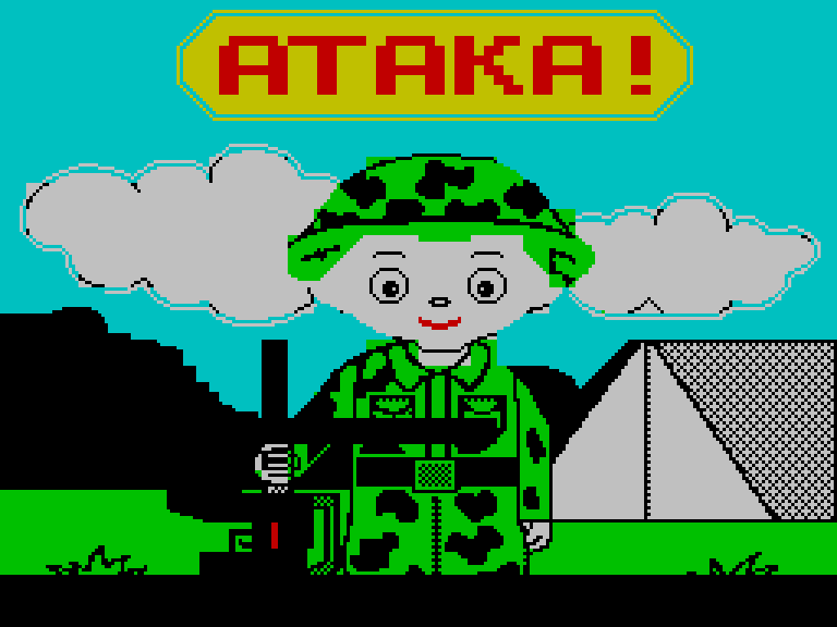 «Атака» — тактическая игра для 1-2 человек. Играют две армии — жёлтая и красная. Цель игры — захватить Штаб противника или уничтожить всю его армию. В игре можно подбирать ящики с оружием, устанавливать мины и влиять этим на ход сражения. После победы жмите клавишу «R» для продолжения.