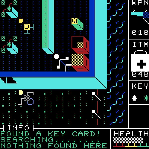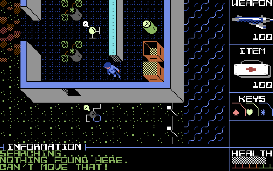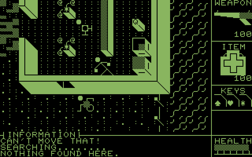 Управление в игре гибко настраивается, но по умолчанию используется следующая схема: перемещение — стрелками, стрельба — клавишами W, A, S, D, использование предметов — пробелом, осмотр объектов — клавишей Z, перемещение предметов — клавишей M. В лифтах выбор этажа осуществляется стрелками ВЛЕВО и ВПРАВО, а выход — клавишей ВНИЗ. В меню используются стрелки и пробел. Дополнительно: ESC позволяет поставить игру на паузу или выйти с текущей карты, TAB вызывает мини-карту, а SELECT переключает музыку.