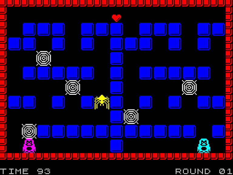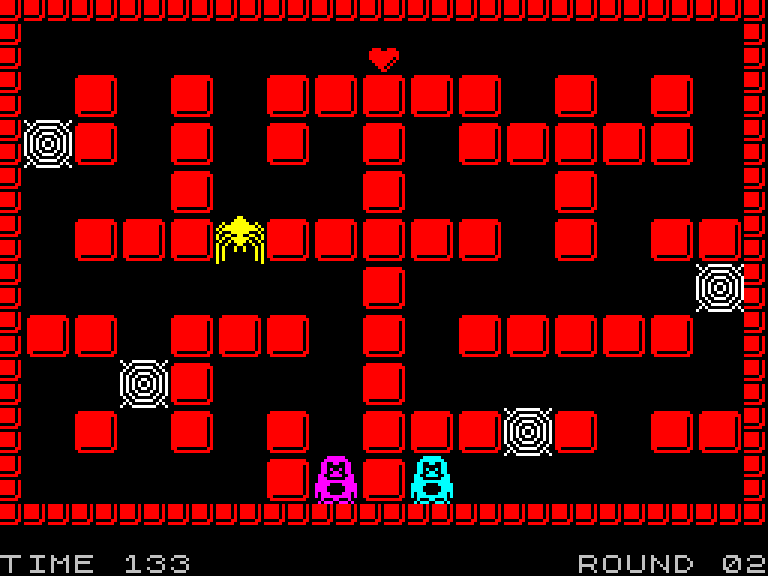 Головоломка, в которой нужно провести двух пингвинов противоположного пола к сердечку, чтобы они встали слева и справа от него. Задача усложняется не только наличием смертельно опасных пауков и отнимающих драгоценное время паутин, но и тем, что управляются оба пингвина одновременно, причём фиолетовая птица всегда движется в нужном направлении, а перемещения второй отзеркалены по горизонтали.