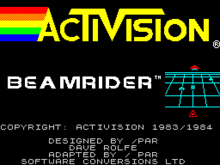 Beamrider — аркадный экшен с видом «от третьего лица» и элементами 3D. Вы управляете космическим кораблём, который передвигается по пяти энергетическим лучам в нижней части экрана и должен очистить 99 секторов космоса от враждебных пришельцев.
