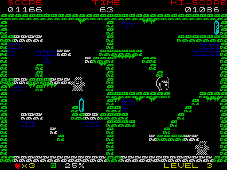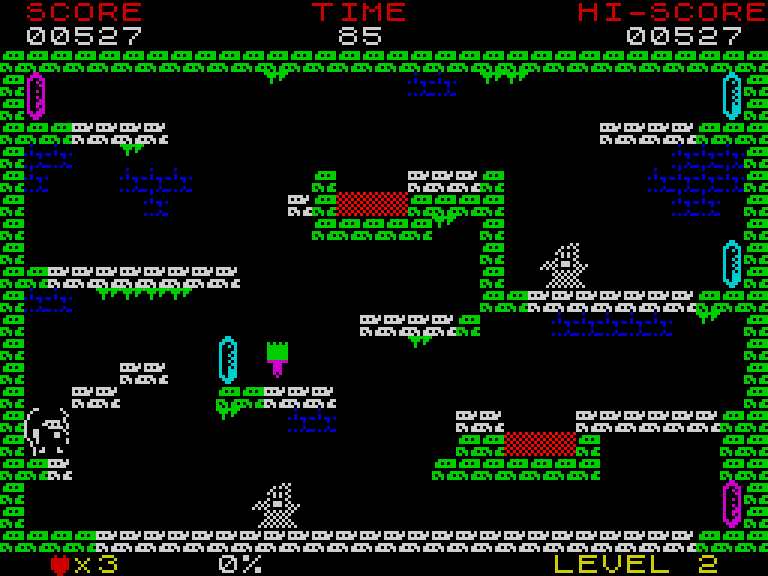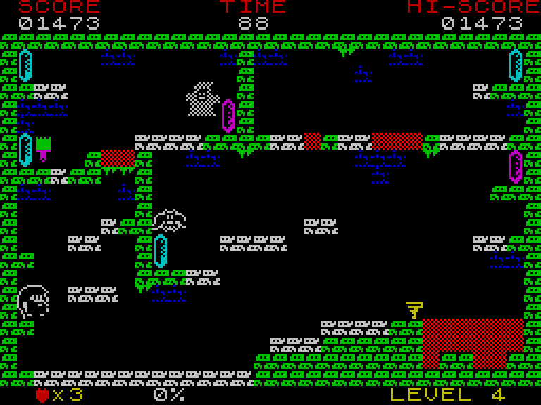 Простенькая, но увлекательная платформер-головоломка, в которой нужно покрасить валиком все полы. Управление несколько заторможенное, потому что игра сделана на компиляторе Boriel's BASIC. Один чёрт лучше игр на движке ZXGM.