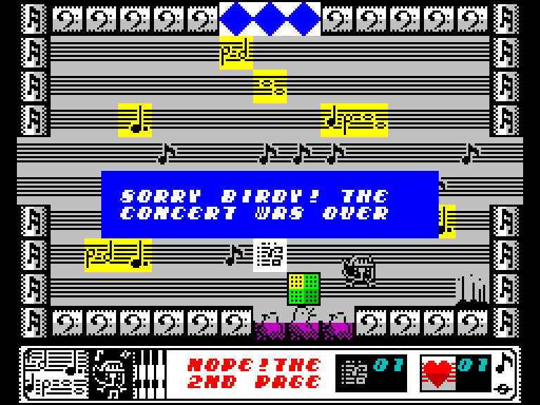 В этой необычной аркаде вам доведётся поуправлять воробьём-музыкантом Бёрди, который давно мечтал стать дирижёром и наконец-то получил шанс выступить на своём первом концерте. Однако другие птицы, собравшиеся поглазеть на Бёрди и послушать, что он там надирижирует, так активно махали крыльями (то ли в восторге, то ли по привычке), что все нотные листы разлетелись по восьми разным залам, и теперь их придётся собирать, причём в определённой последовательности.