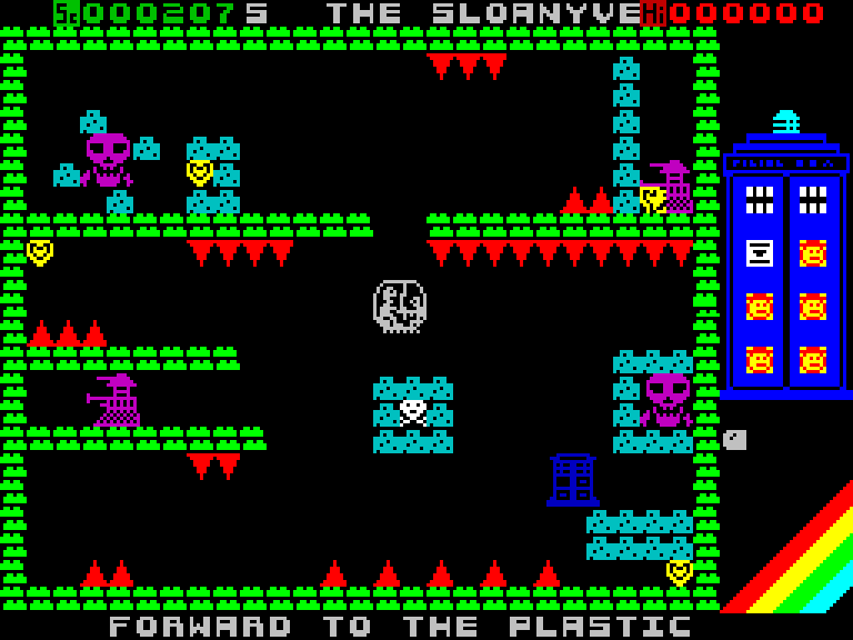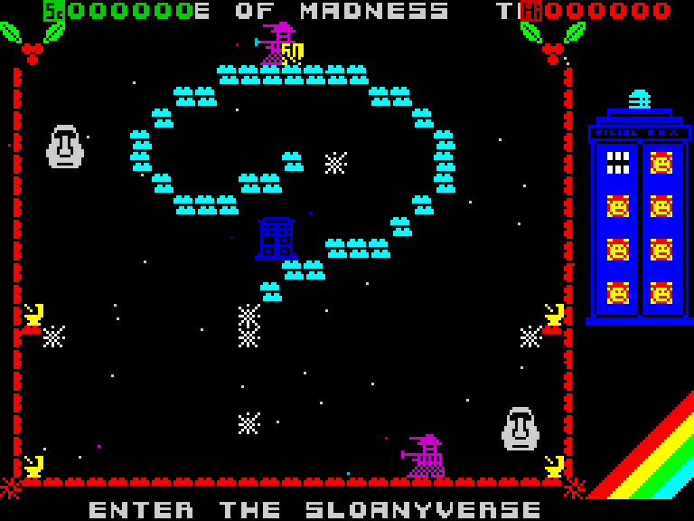 Аркада по мотивам «Доктора Кто», в которой вы управляет то летающей по экрану и собирающей разные предметы Тардис, то самим Доктором — в стиле Manic Miner или Jet Set Willy (второй экран, собственно, практически скопирован с MM).