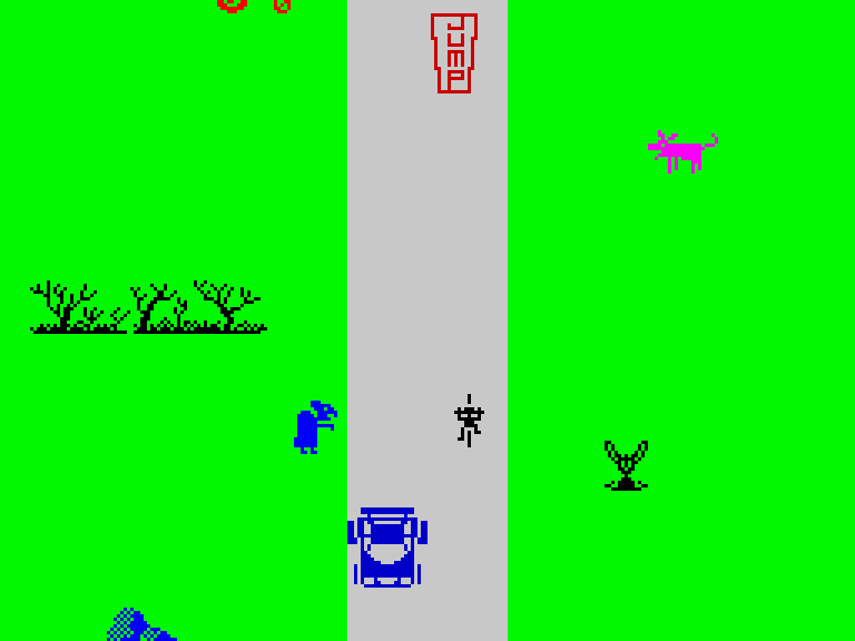 Игра не разделена на уровни — вы просто едете, пока не лишитесь всех жизней. Цель — продержаться как можно дольше, избегая опасностей на своём пути.