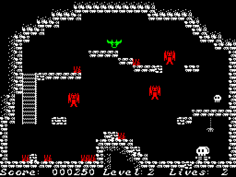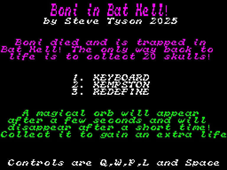Платформер, где игрок управляет скелетом и должен собрать 20 черепов, чтобы вернуться к жизни. Через определённые промежутки времени появляется сфера — её нужно собрать, чтобы получить дополнительную жизнь, но действовать нужно быстро, так как она исчезает через некоторое время. По словам автора, это только его вторая игра для Spectrum.