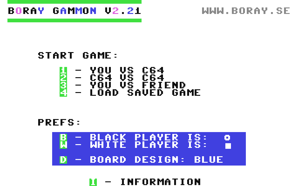 Boray Gammon — нарды с сильным ИИ на компьютерах Commodore