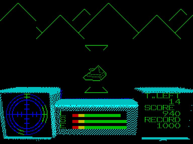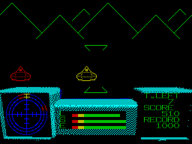 Вы не поверите, но это самая настоящая Battle Zone, даром что на скомпилированном Бейсике. Вас со всех сторон окружают враги, а вы должны их отстреливать двумя пушками. Выглядит Boriel Zone довольно похоже на оригинал, играется достойно, сложность повышается с каждой вражеской волной.