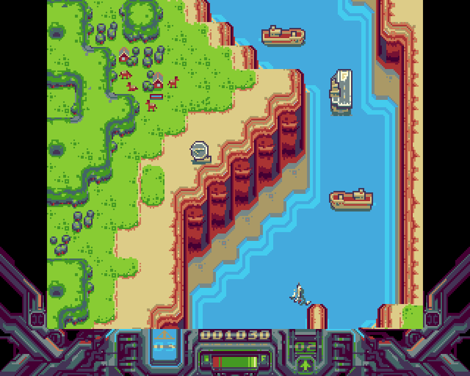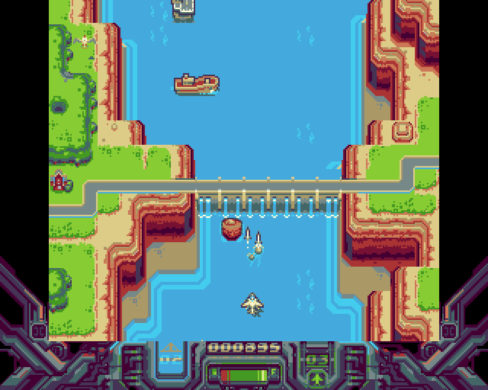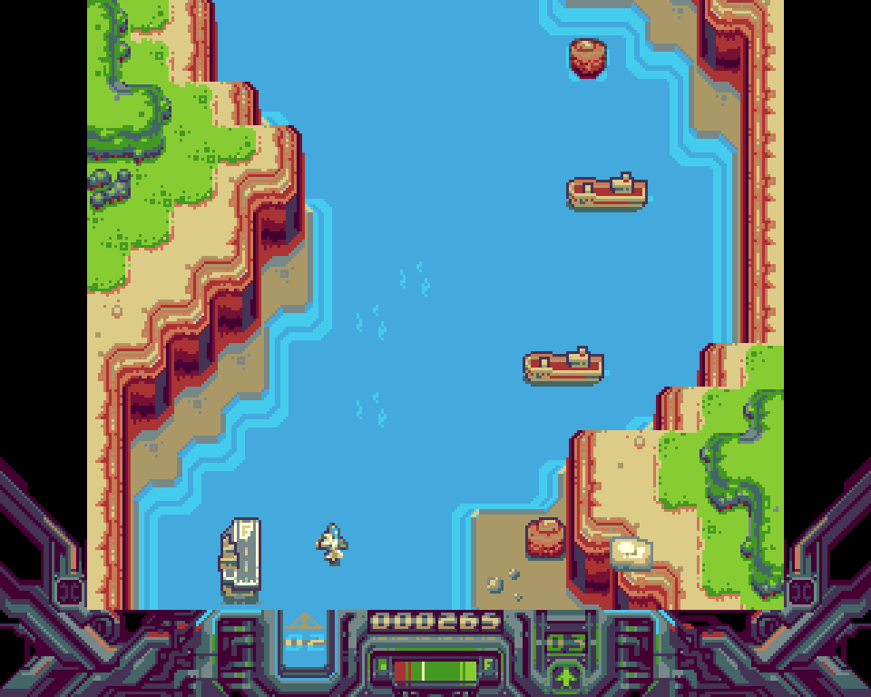 В этой игре тоже нужно лететь над рекой (не забывая вовремя заправляться) и уничтожать вражеские корабли, истребители, танки, вертолёты и даже мосты.