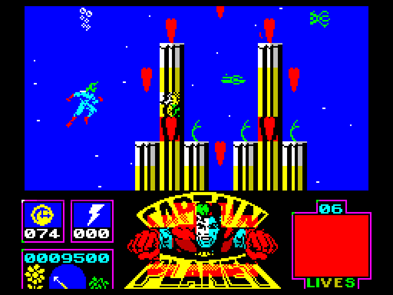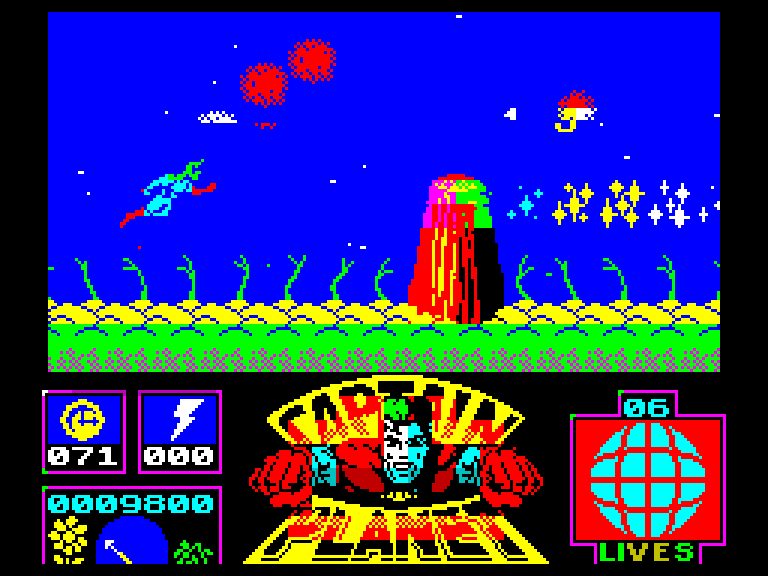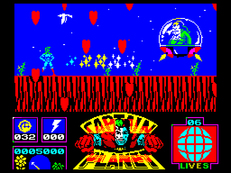 Игра от известной парочки Дэйва Перри и Ника Брути — как водится, очень красочная и шустрая. Captain Planet можно было бы назвать бегалкой-стрелялкой, если бы главный герой не умел летать (а в подводных уровнях — плавать). Так что это, скорее, бегалка-леталка-плавалка-стрелялка.