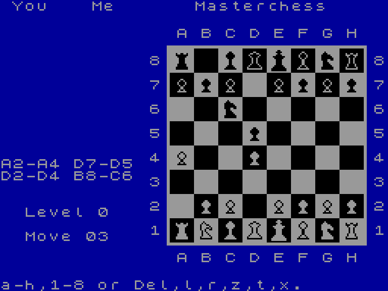 Данная шахматная программа для компьютера ZX Spectrum представляет собой продвинутый симулятор шахмат. Разработанная с использованием машинного кода, она эффективно использует 48 Кб оперативной памяти устройства.