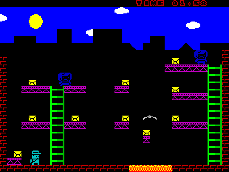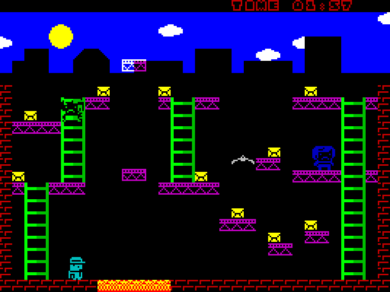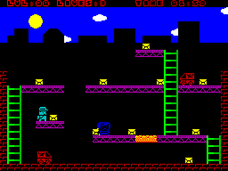 Данж уважения классической игре Chuckie Egg. Платформер, где игрок должен собирать предметы на различных уровнях с лестницами и конвейерами. Игра начинается довольно мягко, но быстро становится сложной. Есть проблемы с балансом сложности — некоторые игроки отмечают, что на 4-м уровне может быть невозможно собрать блок внизу из-за недостаточной высоты прыжка с платформы над конвейером. Была выпущена обновлённая версия 1.1, исправляющая проблемы с лестницами.