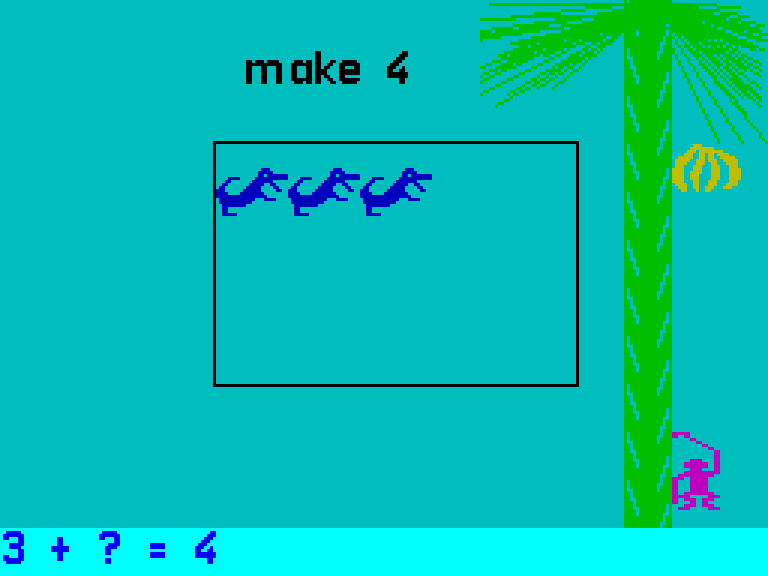 Игровой процесс построен на интерактивном взаимодействии. На экране появляются различные объекты (такие как птицы, часы или крокодилы), количество которых связано с текущим математическим заданием. Например, игрок может увидеть два объекта и получить задание: «Получи 6: 2 плюс ? равно 6». Задача ребёнка — определить недостающее число и нажать соответствующую клавишу.