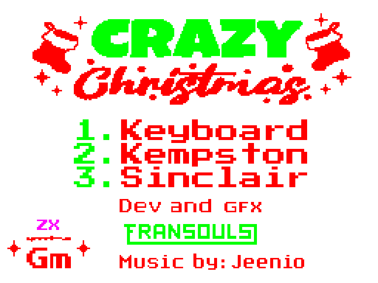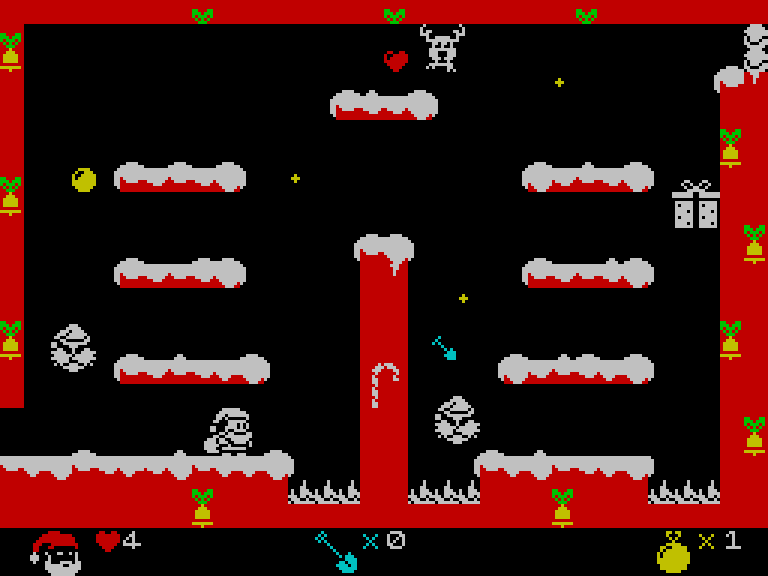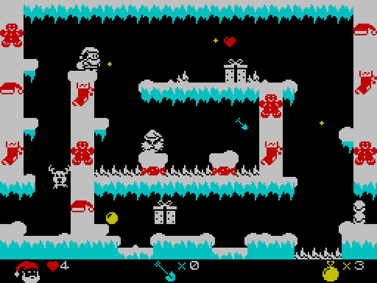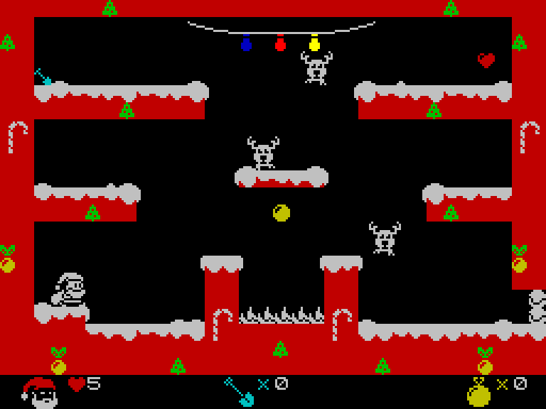 Простенький новогодний платформер на новом движке ZX Game Maker — выглядит заурядно и при этом умудряется тормозить.