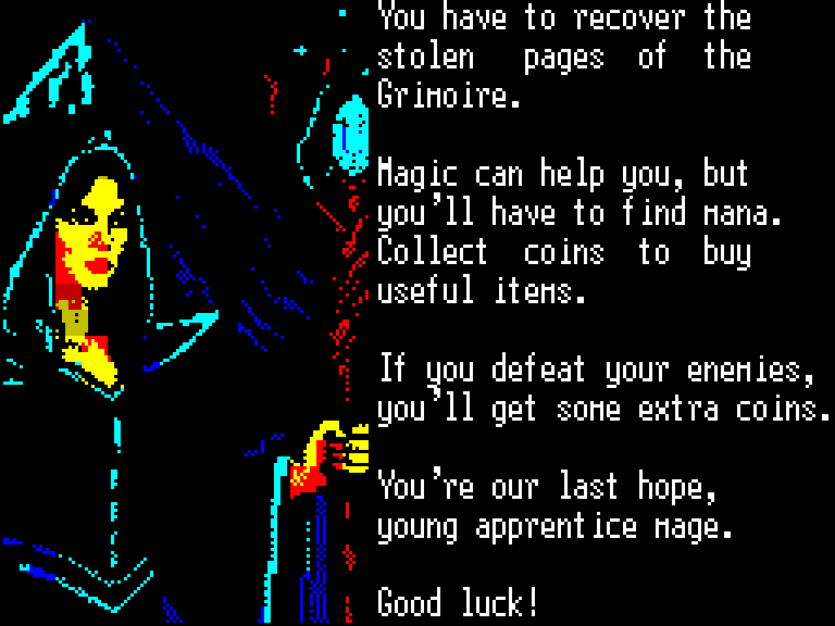 Волшебница Бородополиса попала под власть демонических сущностей в поисках Проклятого Гримуара — древнего тома, хранящего секреты уничтожения этих созданий. Перед пленением страницы книги были разбросаны по самым отдалённым уголкам королевства. Миссия игрока — собрать их и спасти волшебницу, чьё местонахождение остаётся загадкой. Цель игры — найти 9 страниц Гримуара и освободить волшебницу. Игрок может побеждать врагов, находя ману или покупая её в магазинах. За каждых трёх побеждённых врагов даётся 5 монет. При получении урона враги крадут по 5 монет. Страницы Гримуара нужно собирать в определённом порядке, следуя указателям. В игре есть NPC: лесной гном даёт полезную информацию, щедрый гном дарит монеты, если их меньше 5. Также можно находить ману, сердца для восстановления жизни, ключи, монеты и ломать стены магией. RPG-адвенчура с элементами фарминга и стратегии.