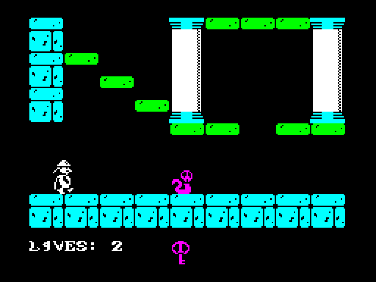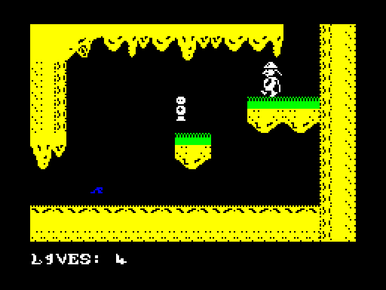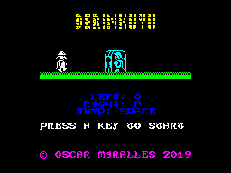 Платформер с на удивление сносной, учитывая его Бейсик-происхождение, играбельностью. Ваш герой умеет ходить влево и вправо, прыгать, подбирать предметы типа ключей и использовать их, причём последние два действия выполняются автоматически. Ваша задача — не сталкиваться с врагами и не падать с очень уж большой высоты. Да, Derinkuyu далека от совершенства (всё мерцает, перемещается строго по знакоместам, а если провалиться в яму, то герой может угодить в «циклическое падение», и тогда финита ля комедия), но играть в неё действительно можно.