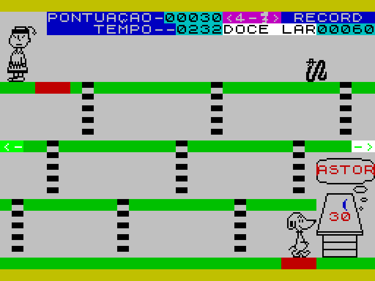 Аркада, в которой вы управляете собачкой, бегающей по экрану и таскающей яблоки к себе в конуру. Фрукты вам выдаёт хозяин (или какой-то знакомый мужик), который находится в левой верхней части экрана. К сожалению, конура располагается в правой нижней, что несколько затрудняет процесс обогащения. Экран разделён на три этажа, между которыми расположены лестницы. По этим этажам ползают змеи и кроты (или это крото-змеи?), которых становится больше с каждым успешно утащенным яблоком.