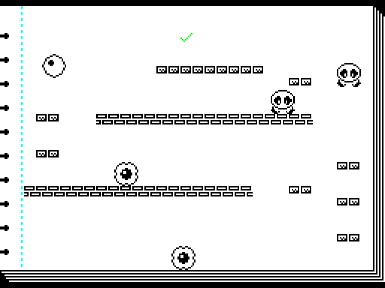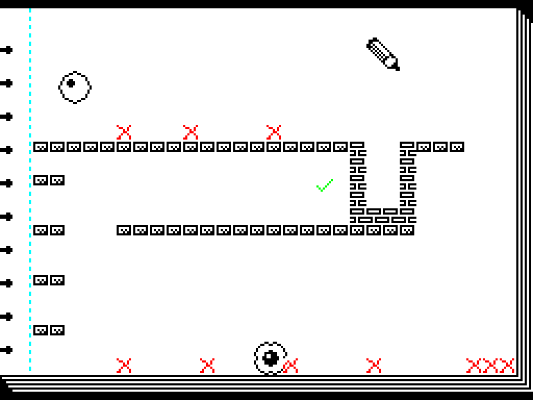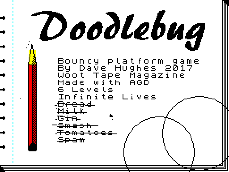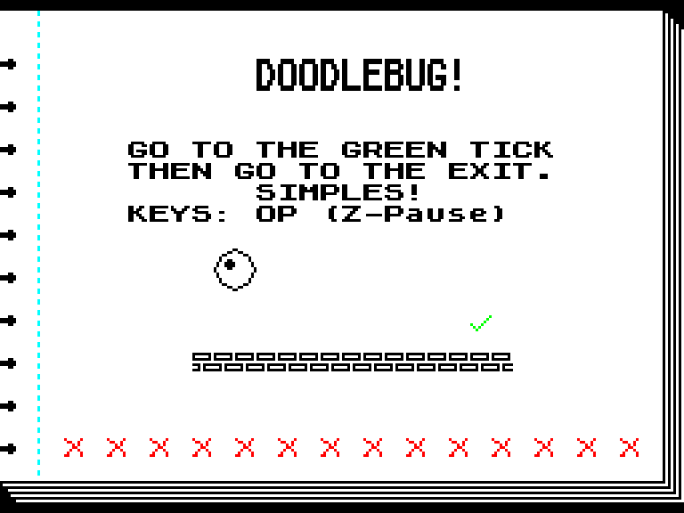 В Doodlebug нужно управлять шариком, который скачет по нарисованному в блокноте уровне, избегая врагов и красных крестиков и пытаясь допрыгать до зелёной галочки, а потом — к выходу на следующий уровень.