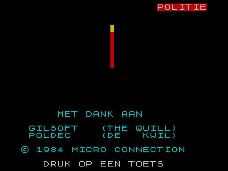 Голландский квест на угадайте каком языке. Название игры переводится как «Дорога смерти», а рассказывает она об инспекторе Сабахе, который отправляется на задание в Удаан. Квест, судя по всему, сделан при помощи программы The Quill и даже обладает кое-какой зачаточной графикой. Если в Амстердаме вы не общаетесь с местными жителями на их родном языке — проходите мимо.