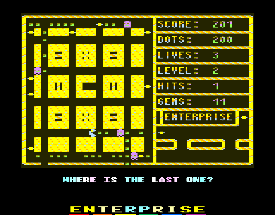 Игра представляет собой вариацию классической Pac-Man с изменёнными правилами. Управляя колобкообразным существом, необходимо собрать на уровне необходимое количество точек и сверкающих кристаллов, а затем потрогать одно из привидений за мягкое место. Но если сделать это, не собрав нужное количество ресурсов, то колобок предупредительно получит по лбу, из-за чего весь уровень будет ему плохо виден. Исправить это возможно, подобрав кристалл, так как в противном случае очередное столкновение с противником чревато потерей одной из жизней. К сожалению, интеллект привидений по сравнению с оригиналом упрощён — теперь они просто бесцельно блуждают по уровню, перекладывая точки с места на место, и не обращают внимание на главного героя.