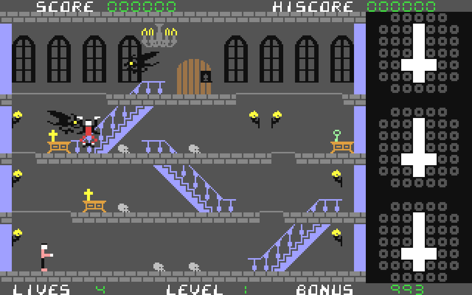 Геймплей незамысловат — на каждом экране главный герой должен собирать распятия и ключ, дабы открыть им дверь и пройти дальше.