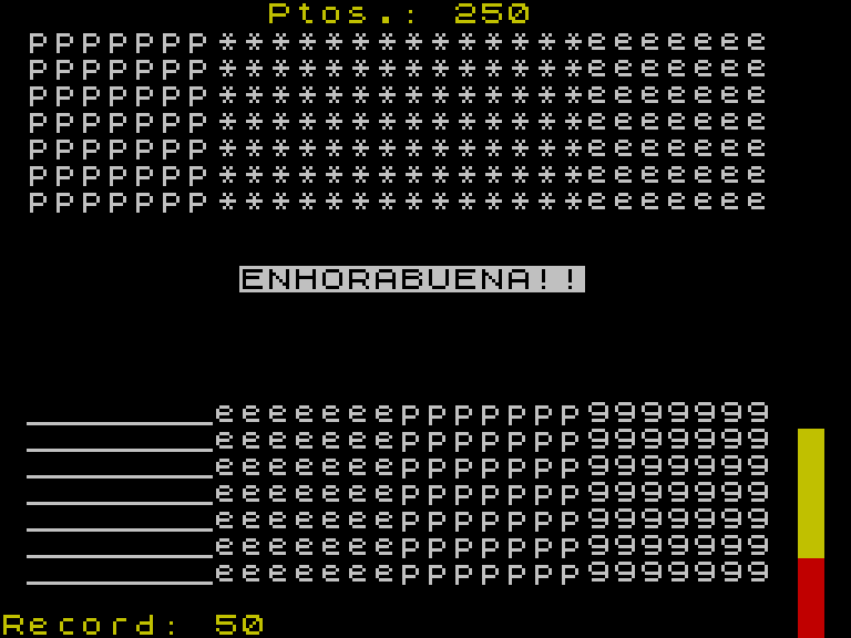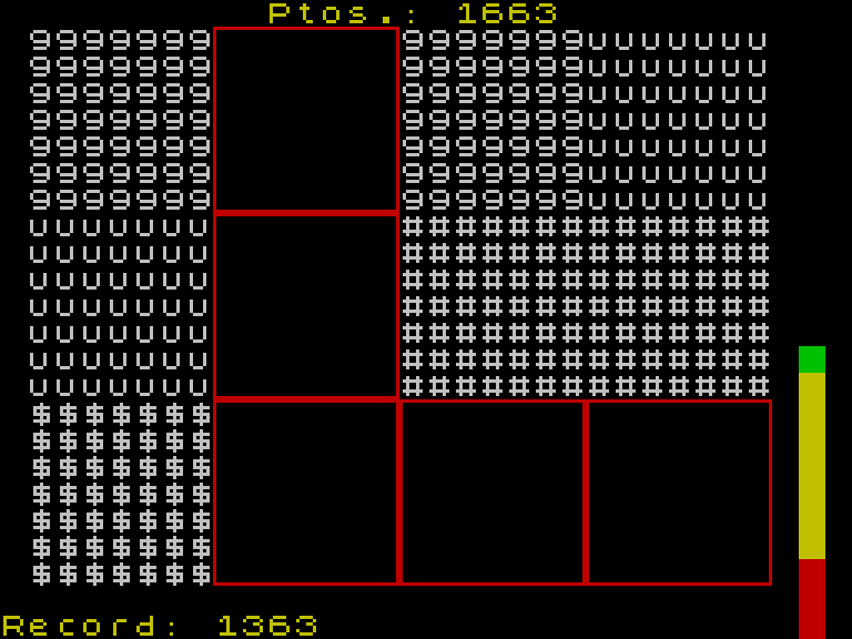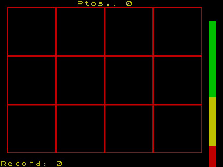 Знакомая всем игра на память, где нужно попарно открывать карточки с одинаковыми изображениями. Здесь роль карточек играют здоровенные квадраты, заполненные буквами или цифрами, а управляется всё 12 клавишами, каждая из которых обозначает соответствующий квадрат: это ряды от 1 до 4, от Q до R, от A до F.