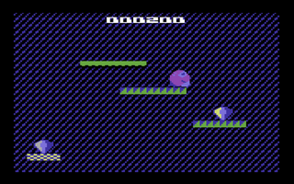 Управляйте фиолетовым нечто, прыгая по платформам и собирая алмазы. Но рассчитывайте маршрут заранее. Падение или возврат на верхний уровень — это конец игры.