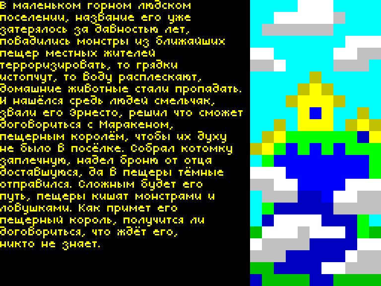 Главного героя зовут Эрнесто, и он решает положить конец террору монстров из ближайших пещер, которые повадились всячески пакостить местному населению. Для этого Эрнесто планирует встретиться с пещерным королём Маракеном и поговорить с ним по душам. Но путь до Маракена непрост — пещеры буквально кишат змеями, пауками, фанатиками, бехолдерами, обвалами и прочей дрянью, которую нужно либо обходить стороной, либо обезвреживать. Разумеется, не напастями едиными — в тех же самым пещерах стоят сундуки с золотом, валяются алмазы, монетки, аптечки, антидоты и разное оружие, а время от времени встречаются добрые люди вроде колдунов или других странников.