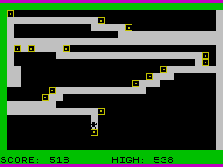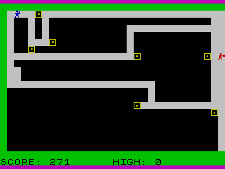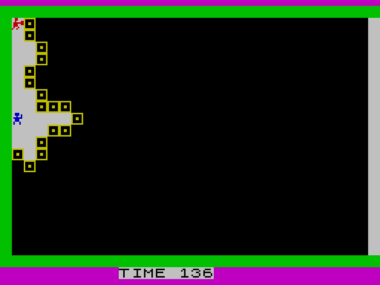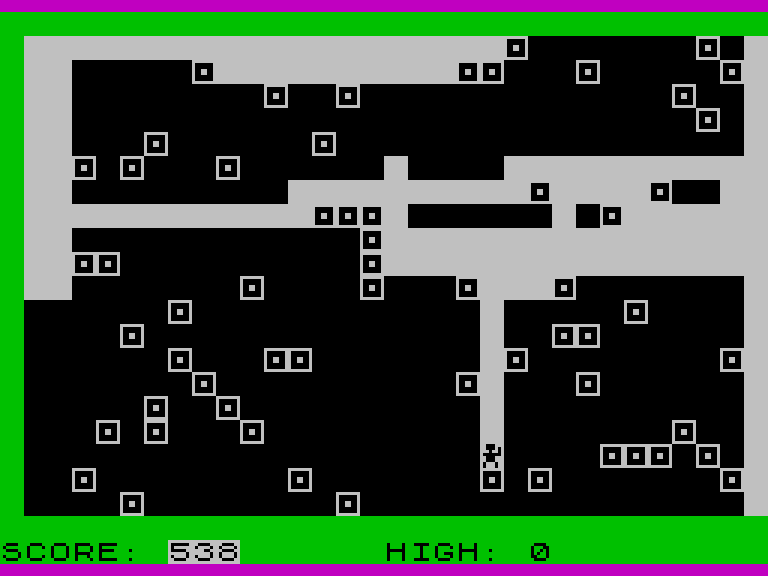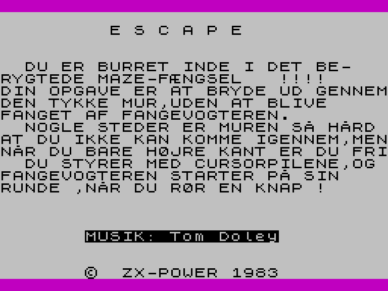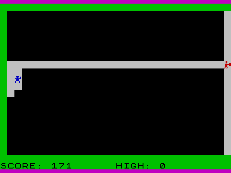 В этой игре нужно найти выход из тюрьмы-лабиринта, прорываясь через достаточно тонкие стены. За вами запросто может погнаться охранник, а некоторые стены слишком толстые и поэтому непробиваемые. Игра заканчивается, когда вы достигаете противоположной стороны экрана (что сделать достаточно легко) или когда вас ловит охранник (он, в принципе, поначалу тоже никуда не торопится), так что куда веселее как можно дольше бегать от стража порядка по всей тюрьме, пытаясь набрать побольше очков.