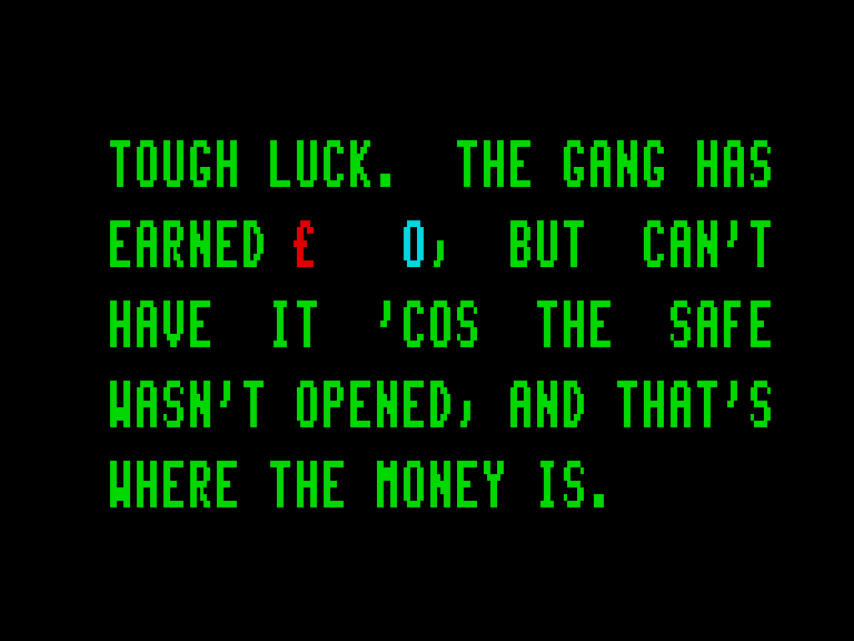 Цель игры — выполнить дневную норму работы для каждого героя. У каждого персонажа есть задание, стереотипно соответствующее его профессии: например, Уолли должен построить стену, Уилма — вернуть три книги в библиотеку и так далее. За выполнение задания персонаж получает букву, а все собранные буквы складываются в пароль от сейфа, где хранятся общие зарплаты. Итоговый пароль — BREAK. Знание его не портит прохождение, поскольку большинство букв можно увидеть заранее, но игра требует, чтобы они были именно собраны, прежде чем позволит открыть сейф.
