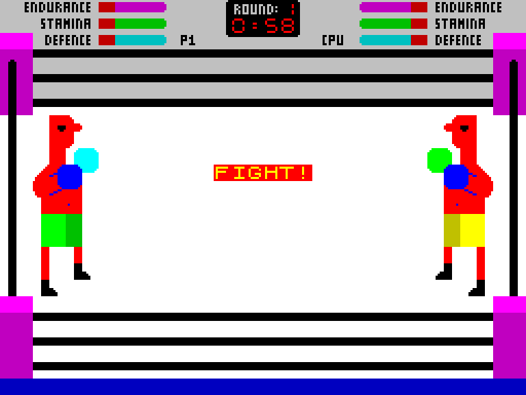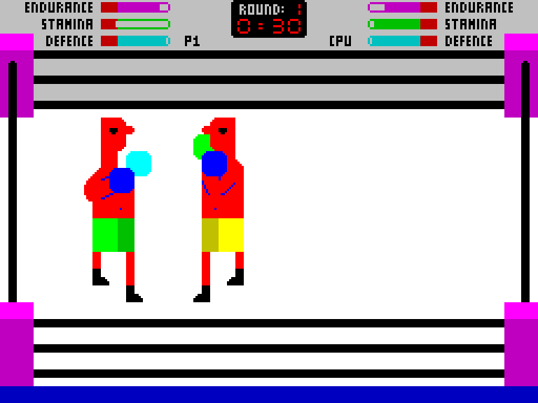 Симулятор бокса с бойцами, которые выглядят как работы какого-то художника-импрессиониста. Зато есть физические показатели типа выносливости и защиты, плюс можно не только бить, но ставить как верхний, так и нижний блок.