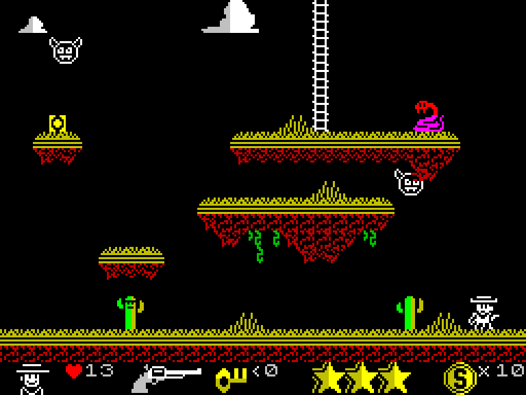 Платформер-стрелялка на тормознутом движке ZXGM, да ещё и с тремя файлами: обычная сложность, повышенная и версия для The Spectrum. Выносите. Следующий!