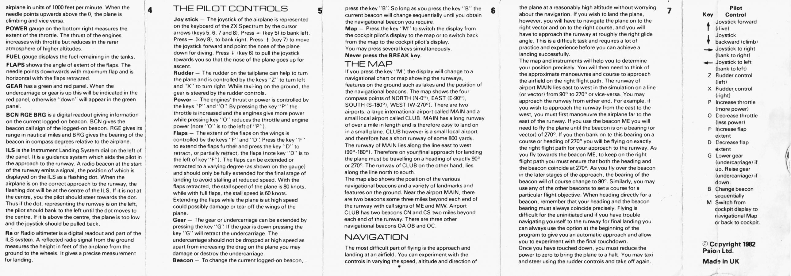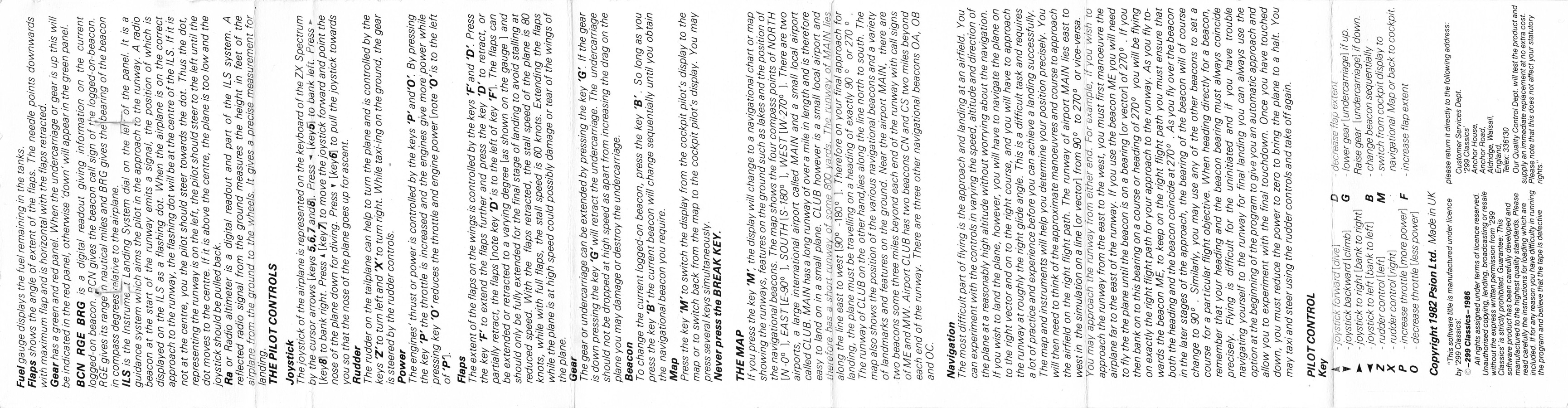 Игра позволяла управлять манёвренным лёгким самолётом, предлагая графическое отображение приборной панели, вид из кабины пилота, навигационные инструменты и реалистичную перспективу при заходе на посадку. Несмотря на ограниченные возможности ZX81, версия для этого компьютера получила высокую оценку журнала Popular Computing Weekly. На упаковке версии для ZX Spectrum даже цитировался их отзыв: «Никакие слова не могут отдать должное этой программе... Лучшей игры вы не увидите, пока Psion не выпустит её для Spectrum».
