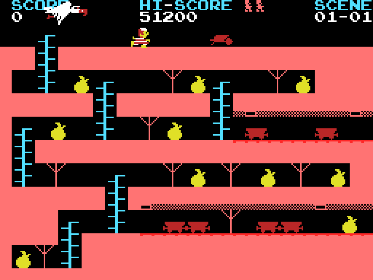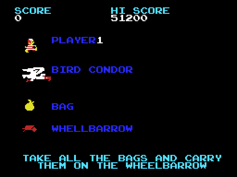 Единственным препятствием на пути к богатству выступает необычный противник — Кондор, который не преследует игрока напрямую, а создаёт опасность своими каменными яйцами. Одно попадание такого яйца стоит герою жизни, что добавляет элемент напряжения в, казалось бы, простой процесс сбора сокровищ.
