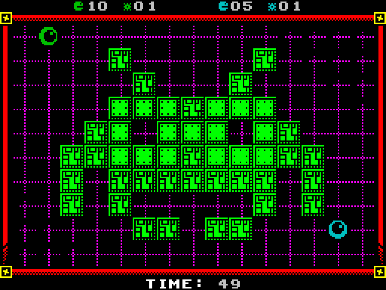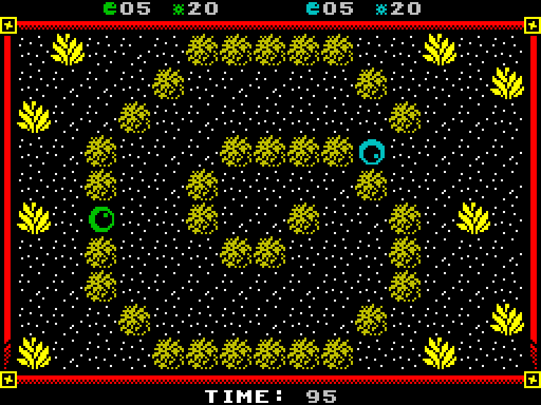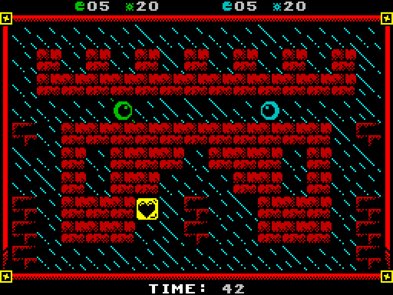 Задумка простая — каждый из двух игроков управляет большим «глазом» и должен убить противника. Врагов разделяют стены лабиринта (их здесь 14 штук, каждый размером с экран), выстрелы ограничены, но время от времени появляются бонусы, позволяющие либо пополнить боезапас, либо получить какой-нибудь другой апгрейд.