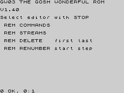 The Gosh Wonderful ZX Spectrum ROM понимает и несколько новых команд — их надо писать после стандартного оператора REM. Также автор решил исправить несколько наиболее вопиющих ошибок встроенного спектрумовского Бейсика.