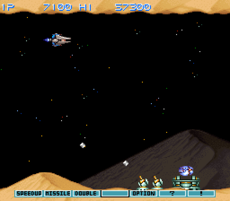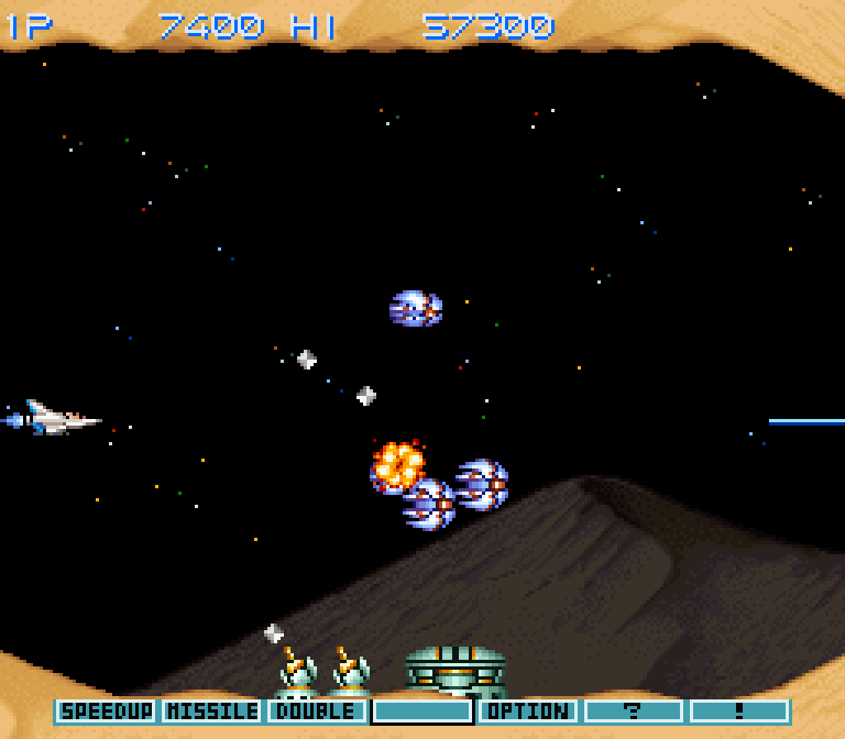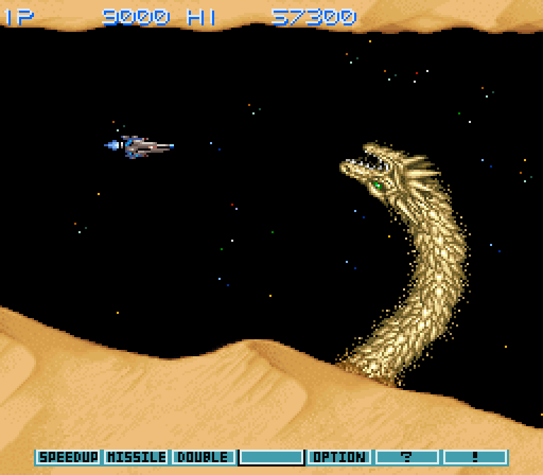 Третья часть знаменитой серии скролл-шутеров от компании Konami. У игры было очень мало домашних портов, причём только один из них вышел почти одновременно с оригиналом — в 1990-м году. Да, речь о версии для SNES, которая не только добавила возможность продолжить игру после окончания всех жизней (из версии для игровых автоматов эту привычную штуку почему-то убрали), но и добавила изрядное количество тормозов, которые особенно заметны на «уровне с пузырями».