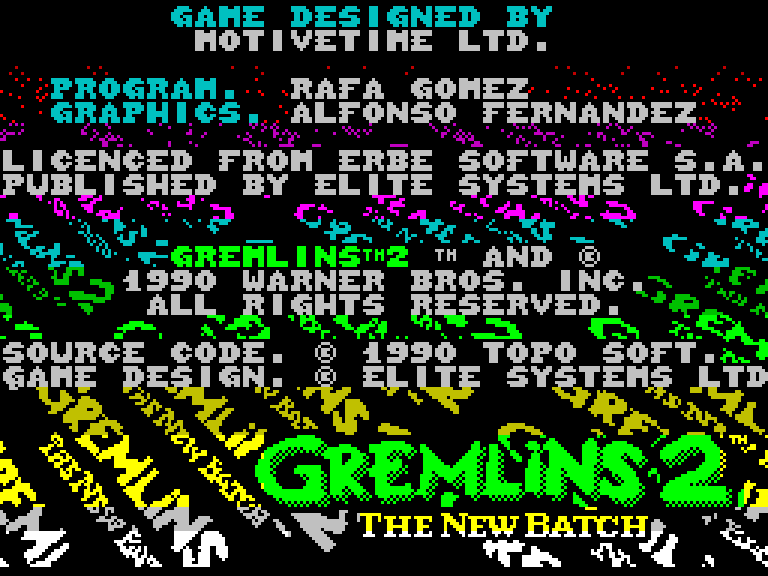 Экшен со скроллингом по мотивам фильма «Гремлины 2». Не самый лучший представитель жанра — в первую очередь потому что гремлинов слишком много, и они теряются на фоне шумноватых задников. Зато это редкий случай, когда испанская компания получила права на создание игры по мотивам голливудского фильма.
