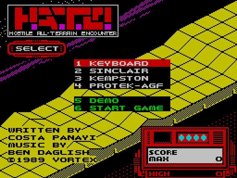 Замечательный изометрический скролл-шутер, который сделал Коста Панайи (Highway Encounter, Deflektor и так далее). Последняя игра этого программиста для ZX Spectrum, между прочим. Геймплей порядком смахивает на Zaxxon, но отличий тоже хватает. Скроллинг плавный, управление отзывчивое, надо лишь привыкнуть к тому, что время от времени приходится менять высоту полёта.