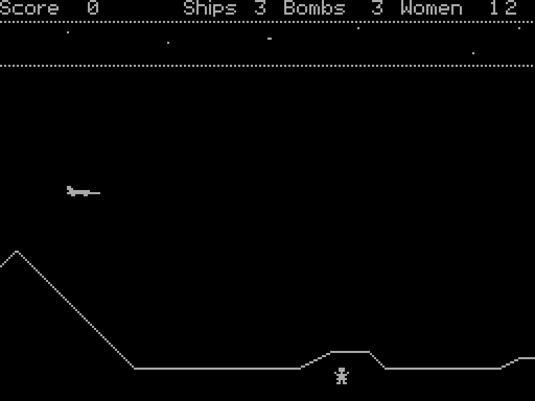 Управляя космическим кораблём, оснащённым лазерным оружием и ограниченным запасом мощных бомб, игрок должен уничтожать врагов и спасать похищенных. Корабль может свободно перемещаться в обоих направлениях, а специальный сканер помогает отслеживать приближение противника.