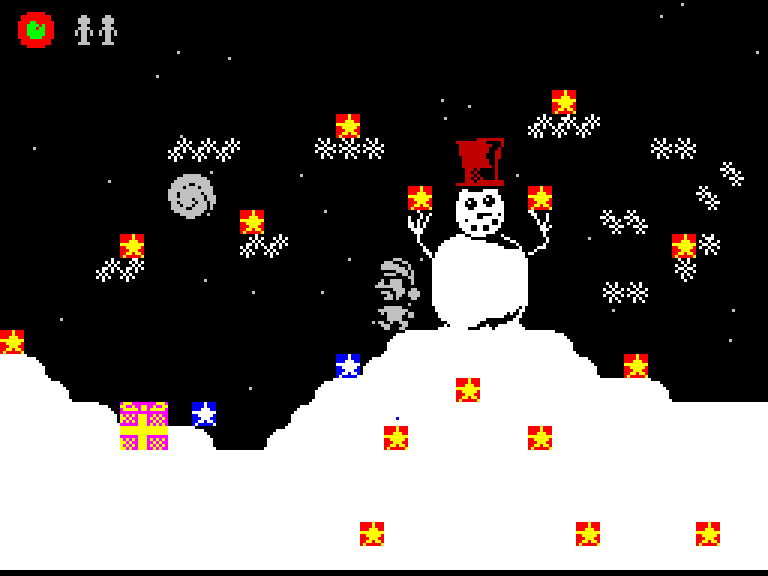 Платформер, в котором нужно собрать все подарки на экране и не столкнуться ни с одним из врагов. К сожалению, управление слишком «скользкое» (зима же!), поэтому игра куда сложнее, чем должна быть.
