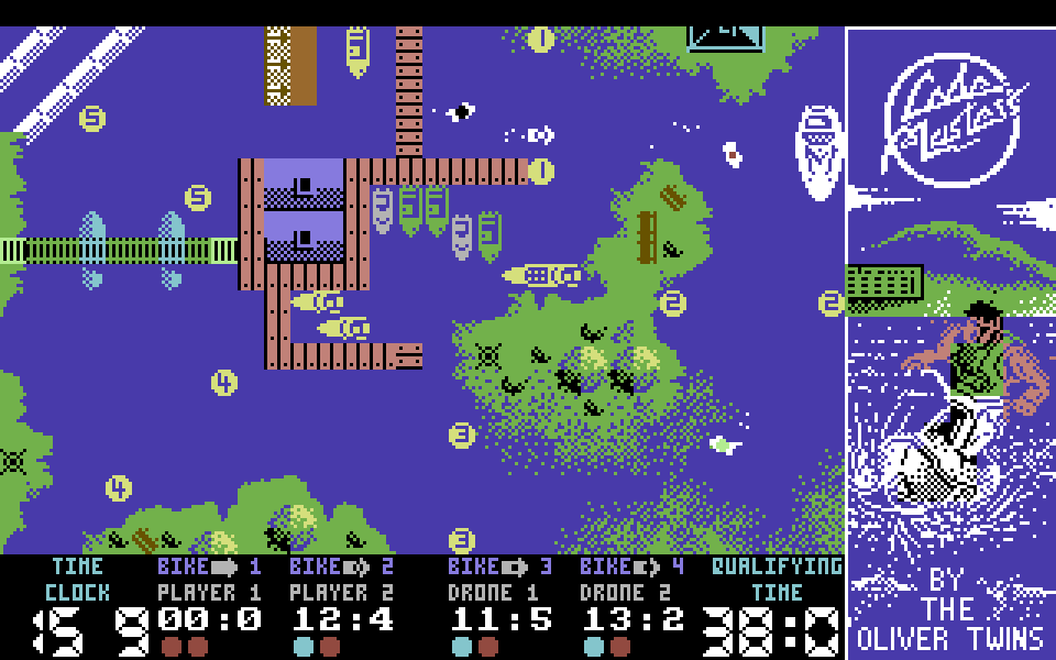 На трассах установлены буи с номерами — важно проезжать между ними, иначе круг не будет засчитан. Игровой процесс отображается с высоты птичьего полёта, что позволяет видеть всю трассу целиком.
