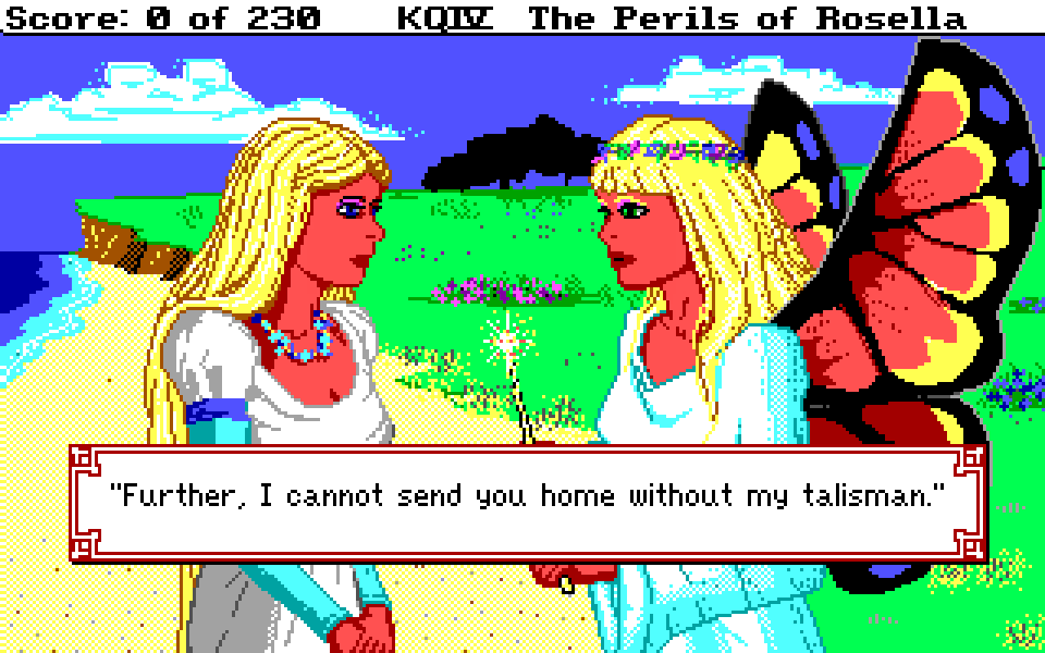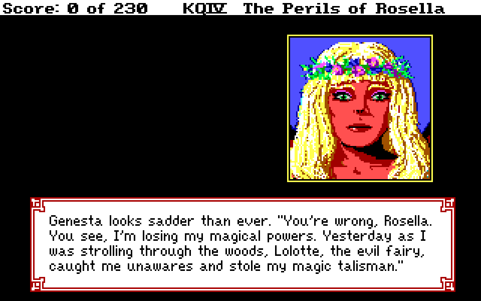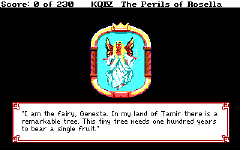 Король Грэхем передаёт шляпу приключенца детям и падает навзничь от сердечного приступа. На смертном одре отца его дочь, принцесса Розелла, в слезах убегает в тронный зал, где получает магическое послание через зеркало. Теперь только от неё зависит, получится ли отыскать редкий фрукт для лечения короля и попутно спасти далёкий Тамир от злой колдуньи Лолотты.