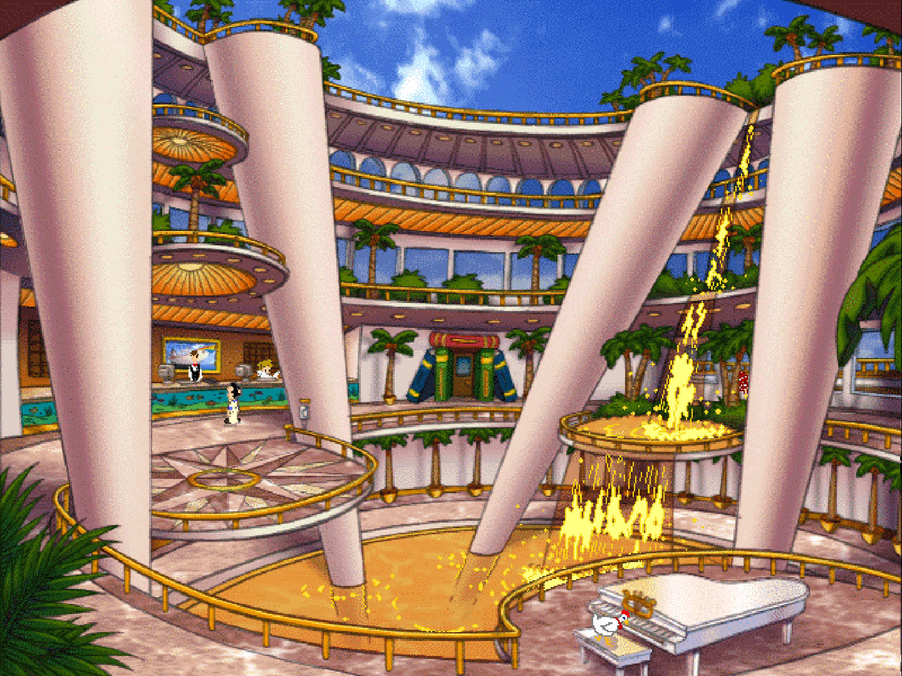 История начинается с драматичного эпизода — то, что должно было стать самой восхитительной ночью в жизни Ларри с прекрасной Шамарой из предыдущей части игры, оборачивается катастрофой. Выясняется, что единственная страсть девушки — это деньги, и она без зазрения совести оставляет Ларри прикованным наручниками к кровати с зажжённой сигаретой. Пентхаус загорается, и нашему герою приходится спасаться буквально чудом, совершив отчаянный прыжок с 40-го этажа.