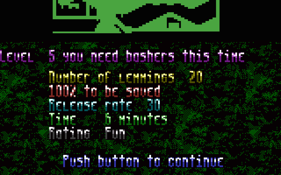 С каждым новым уровнем игра становится всё сложнее. Меняются условия прохождения: количество доступных навыков, время на выполнение задачи и число леммингов, которых необходимо спасти. Это требует от игрока постоянной адаптации стратегии.