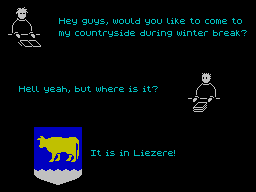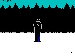 На дворе последние дни последнего месяца зимы, так что самое время немного порыбачить: для этого надо сначала выбрать место на озере, затем просверлить лунку, дождаться клёва и подсечь рыбу. Всё это — руководствуясь подсказками в нижней части экрана. Игра очень медитативная и вообще на любителя, но много ли вы встречали симуляторов рыбалки, да ещё на ZX Spectrum?