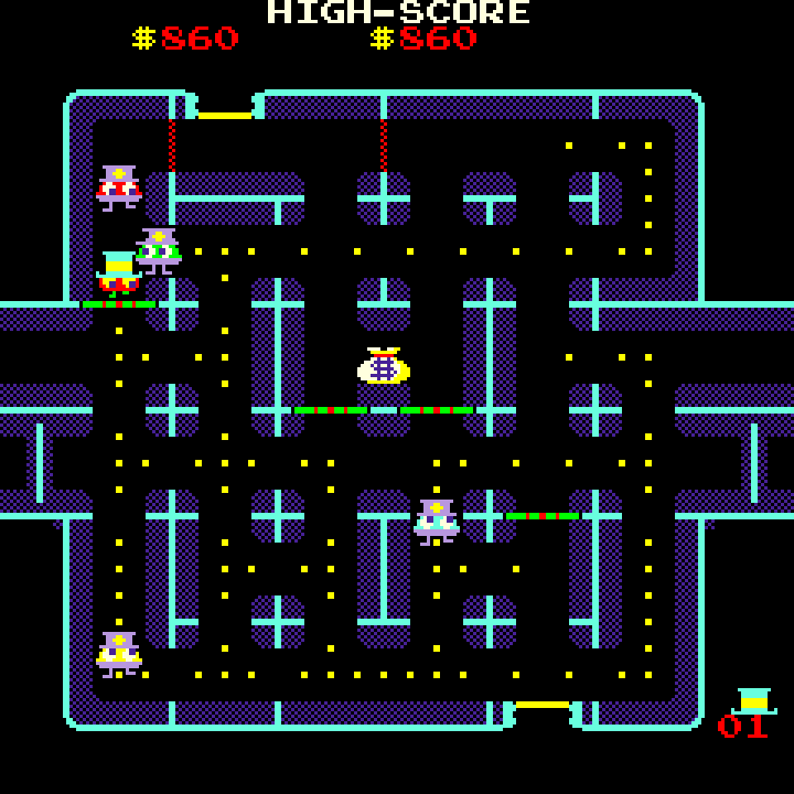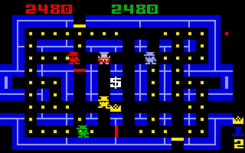 The game's main character is a thief. The object of the game is to enter a maze and collect all the coins and, if possible, any other treasure that may appear. The thief must then exit the maze (a vault) without being apprehended by the Super D (policemen). The thief can close doorways within the maze in order to temporarily trap the Super D and allow him to keep his distance from them. Only two doors can be closed at a time. The Super D policemen are named Stiffy, Scaredy, Smarty, and Silly.