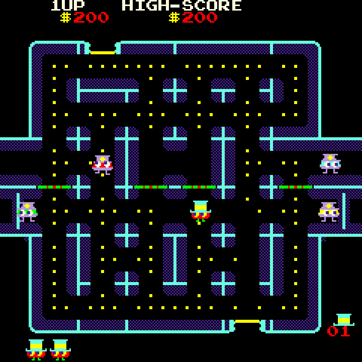 Lock 'n' Chase is a 1981 maze arcade game developed and published by Data East in Japan in 1981, and later published in North America by Taito. Lock 'n' Chase was Data East's response to Pac-Man. The game's main character is a thief. The object of the game is to enter a maze and collect all the coins and, if possible, any other treasure that may appear. The thief must then exit the maze (a vault) without being apprehended by the Super D (policemen). The thief can close doorways within the maze in order to temporarily trap the Super D and allow him to keep his distance from them. Only two doors can be closed at a time. The Super D policemen are named Stiffy, Scaredy, Smarty, and Silly.