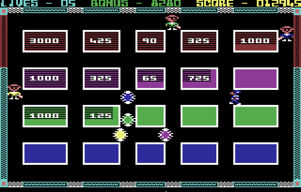 С виду игра немного похожа на Pac-Man — главный герой тоже бегает по лабиринту, стараясь не сталкиваться с врагами. Однако цель на каждом экране совсем иная — надо оббежать вокруг все прямоугольники с числами, дабы их полностью закрасить и получить соответствующее количество очков. Сделать это непросто — враги постоянно движутся в вашем направлении, а спустя какое-то время в верхней части экрана появляются вредители, которые медленно спускаются в низ и смывают краску.