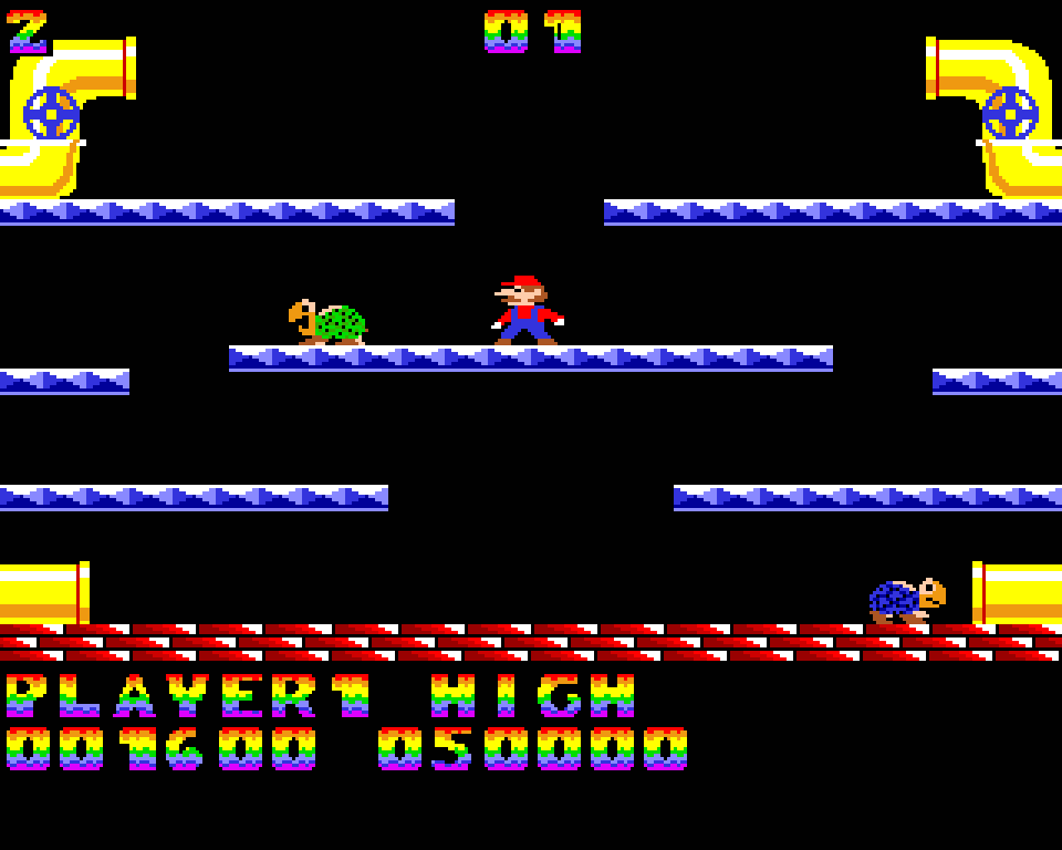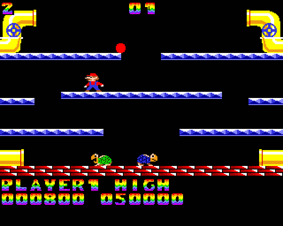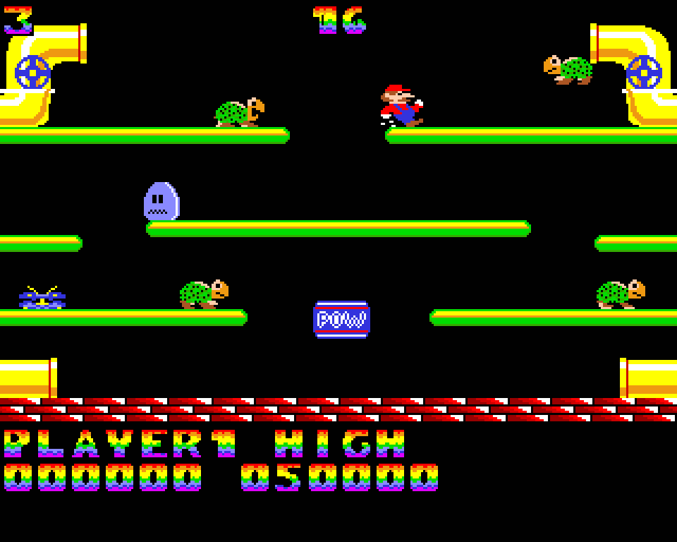 Эта платформенная головоломка, впервые познакомившая игроков с Луиджи, поддерживает однопользовательский и двухпользовательский режимы с двумя вариантами игры, но одной целью. Раки, черепахи и прыгающие жуки-флайеры выгоняются из канализации: чтобы это сделать, нужно подпрыгнуть и ударить платформу снизу под врагом, оглушить его, а потом столкнуть с платформы. Уровень считается завершённым, когда собран определённый набор монет.